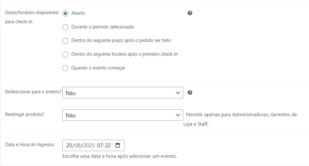 Para a maioria dos eventos pode ser deixado em aberto, visto que os únicos que conseguem fazer check-in de um ingresso serão a equipe da Enjoy Ticket.
