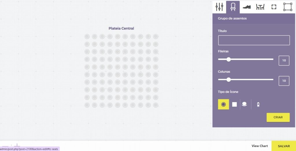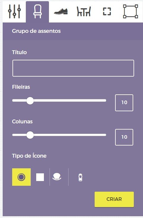 Depois de inserir esses parâmetros, clique no botão amarelo Criar e seu primeiro grupo de assentos aparecerá na tela de assentos.