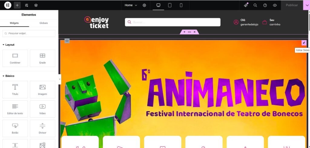 Depois de feitas as alterações clique em “Publicar” no canto superior direito da página.